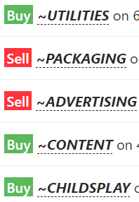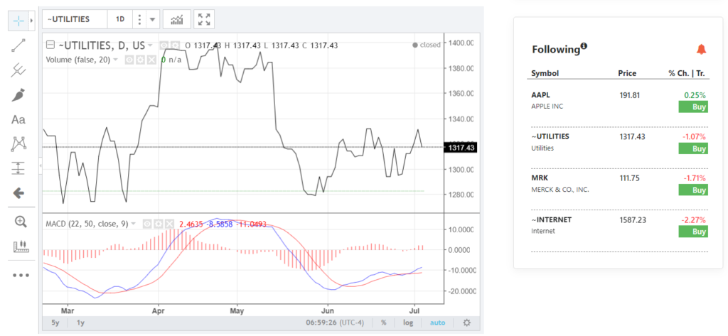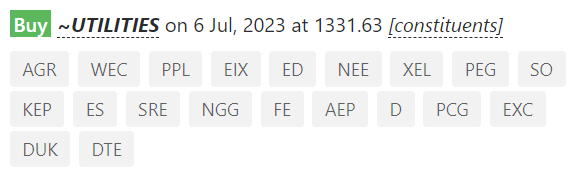 To view the constituents of the theme, the user may click on the ‘[constituents]‘ option the next to the rate when the trend got changed. Below is the sample constituents of ‘~UTILITIES‘ theme as on 06th July 2023.