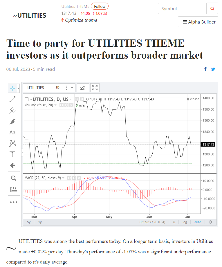 Alternatively, if the user types the specific theme in the ‘Search box‘ at the top-middle of the page, then also the user will be taken to the specific ‘Alpha Report‘ page of that theme. Below is the sample ‘Alpha Report’ of theme ‘~UTILITIES‘.
